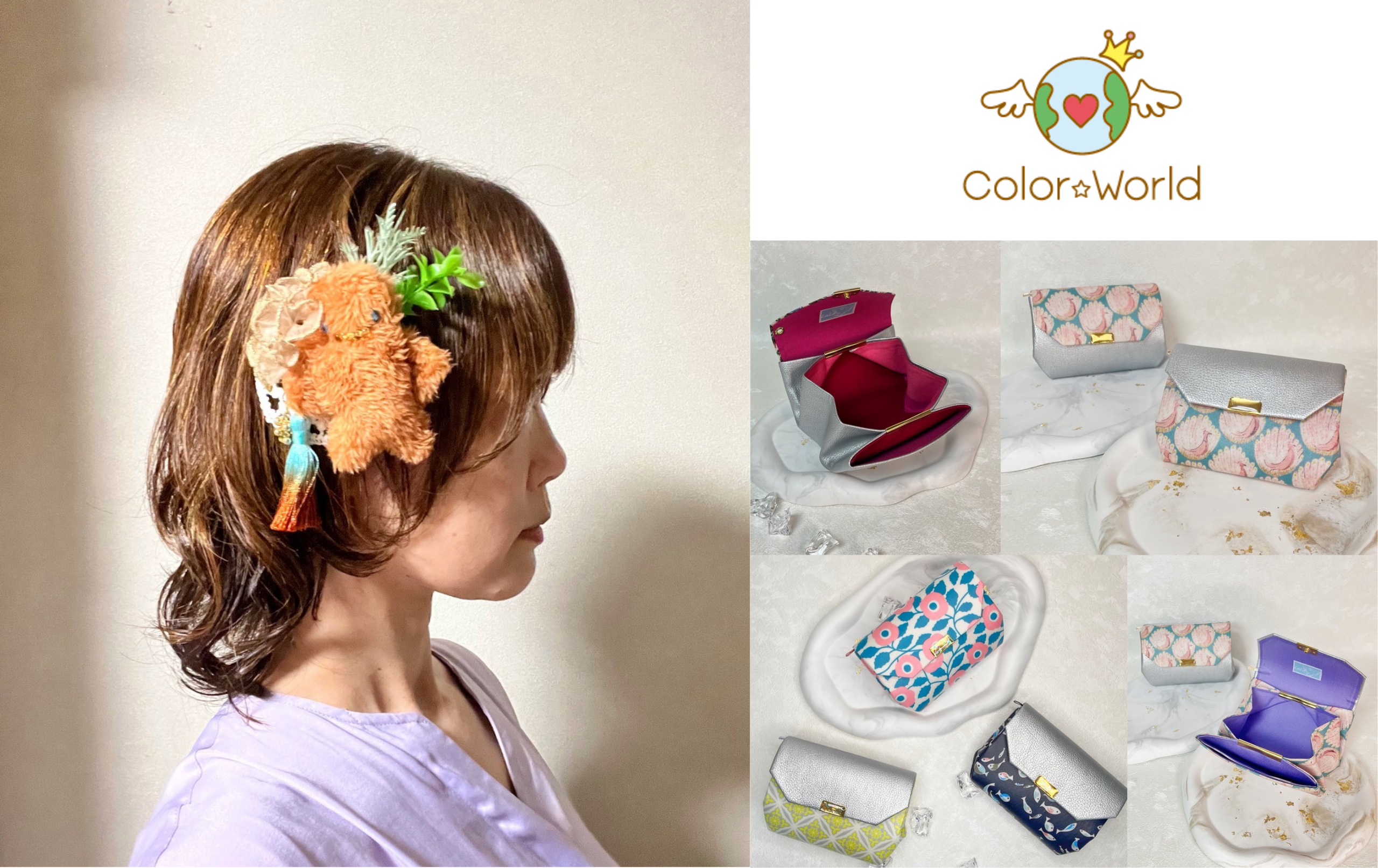 幼い頃から「色」と「ものづくり」が好きでした。絵を描くこと、布を選ぶこと、手で形をつくること——それは私にとって自己表現そのものでした。長く会社員として働く中でも、ふとした瞬間に「自分の手で何かを生み出したい」という気持ちが顔を出していました。そんな思いを形にしたのが、ハンドメイド雑貨ブランド「Color☆World」です。前職で得た経験と、色彩心理を学んだ知識を組み合わせて、見た人の心が明るくなるような作品づくりをしています。